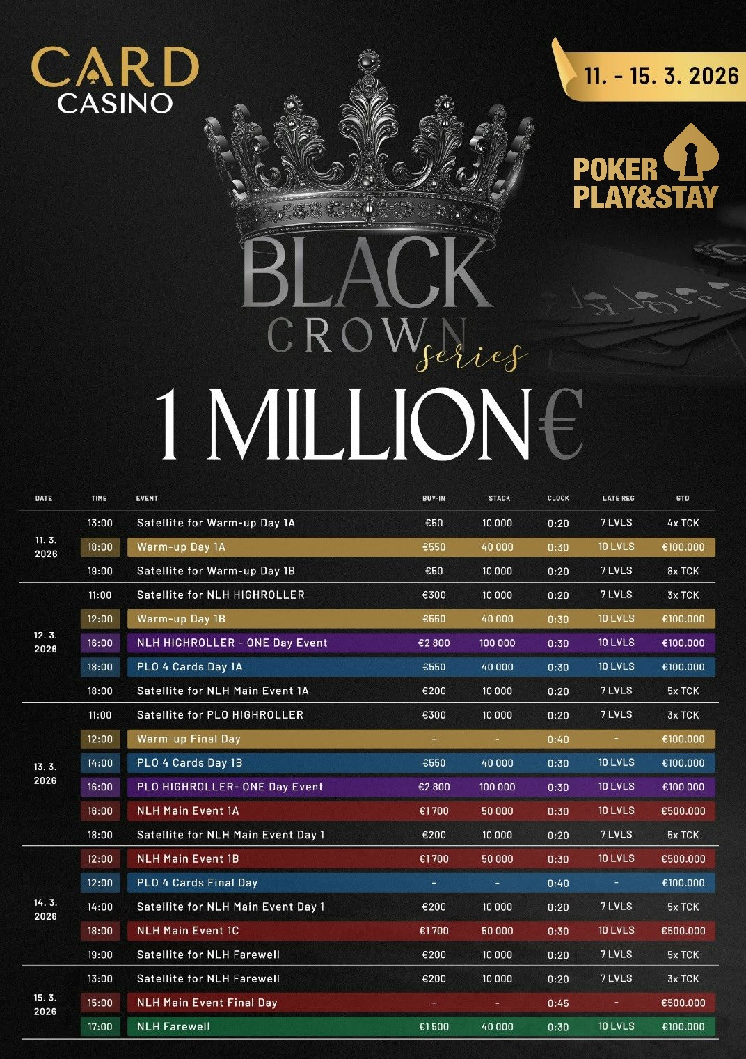 Don’t miss your chance to join the series at Card Casino Samorin! Gather your poker friends, prepare your strategies, and be part of an incredible tournament atmosphere that promises thrilling moments, great competition, and life-changing opportunities. Register today, and let’s create unforgettable memories together at the Black Crown Series!