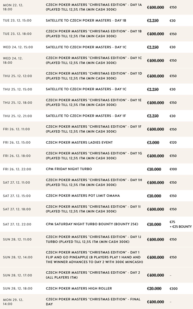 Don’t miss out on the excitement of the CZECH Poker Masters. Whether you’re a seasoned poker veteran or a newcomer eager to get in on the action, this event provides a uniquely engaging atmosphere. Come and test your skills against a field of passionate players, and you may find yourself competing for a life-changing prize! Join us for an unforgettable poker experience!