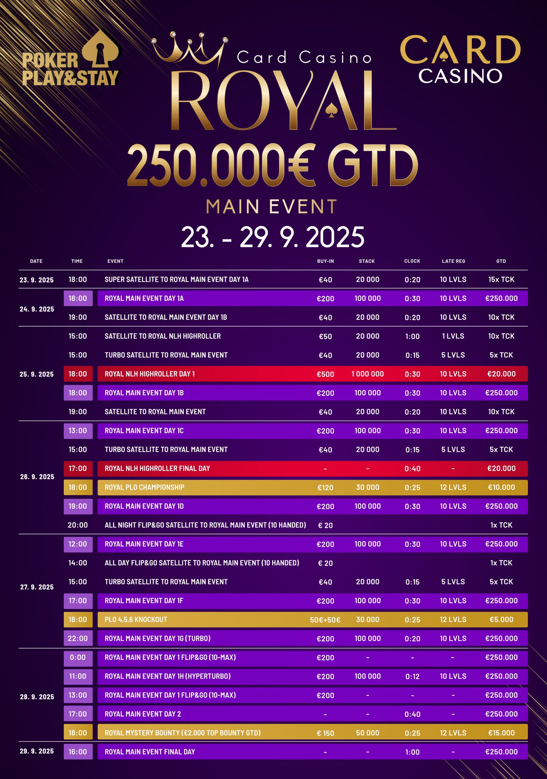 We are thrilled to invite you to an exclusive Royal Event at Card Casino, where excitement and elegance come together for an unforgettable experience. The Royal Event is more than just a poker tournament; it’s a celebration of skill, strategy, and competition. Players from all over Europe will gather to compete for remarkable prizes and take part in various thrilling games that will test their abilities.